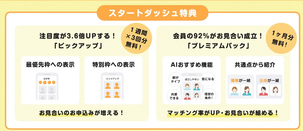 結婚相談所グレイスマリーでは新規入会の会員様に「ピックアップ掲載」1週間×3回(7,500円)+IBJシステム「プレミアムパック」1か月分(3,500円)合計11,000円相当をプレゼント!!